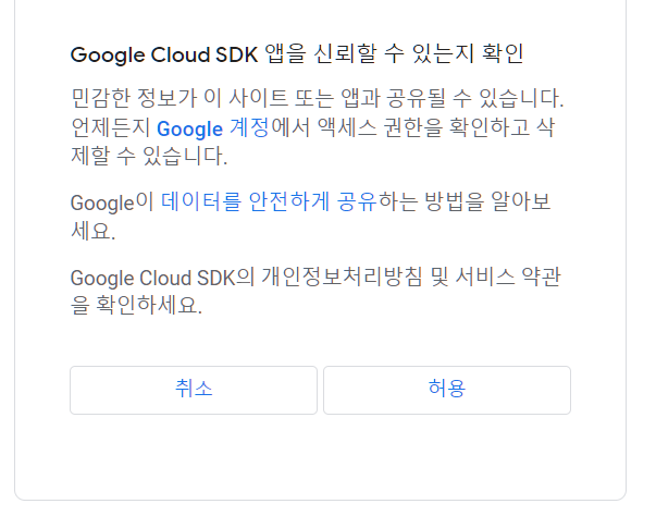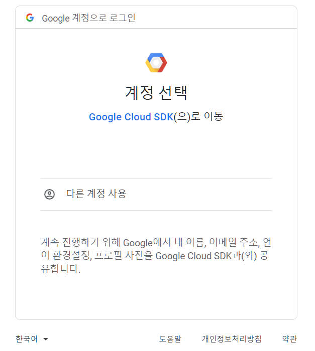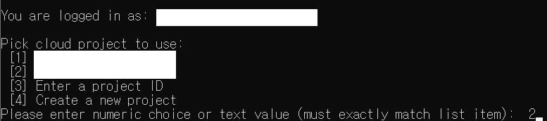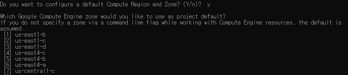 터미널 또는 cmd에서 gcloud init => Y누르기