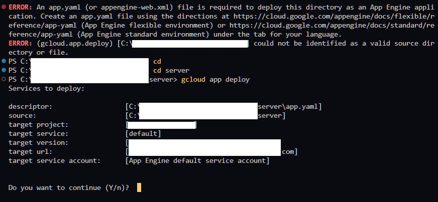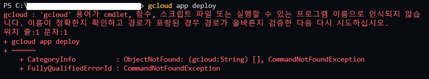 app.yaml 파일 없대서 cd 로 폴더 이동하고 다시 실행