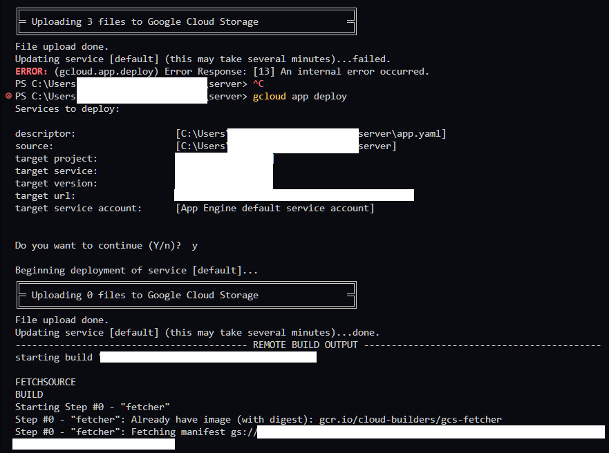 프로젝트(6) - 구글 클라우드 플랫폼 서버 배포, gcp error