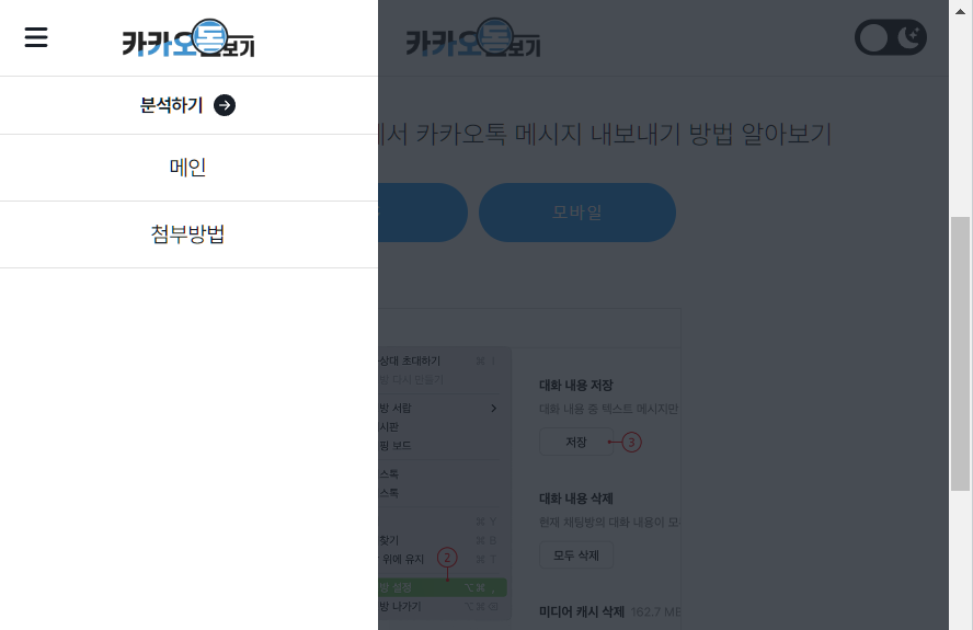 사이드 메뉴 컴포넌트가 나타날 때 body에 css style을 몇 가지 적용하여 스크롤이 되지 않도록 할 수 있다.
